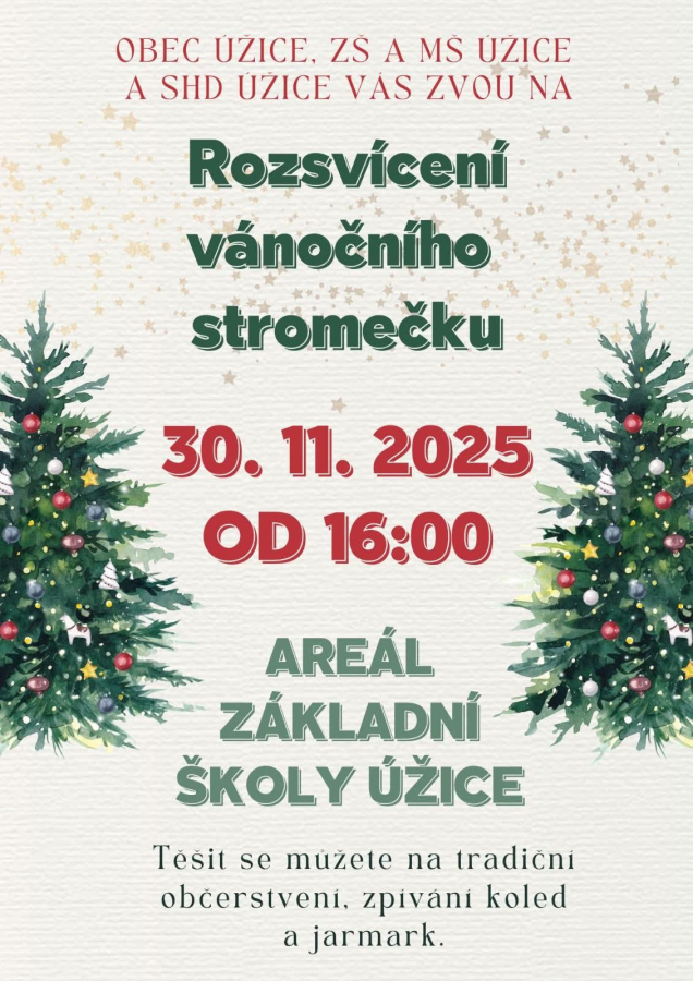 Dne 30.11. před budovou školy proběhne slavnostní rozsvícení vánočního stromku a vánoční jarmark. Všichni jste srdečně zváni.